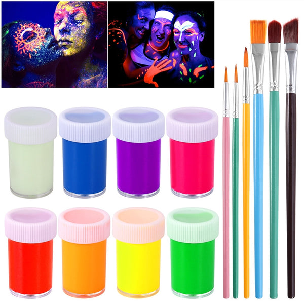 NUOLUX UV Glow Blacklight Face and Body Paint 8 Colors Fluorescent Pigment and 6pcs Paint Brushes